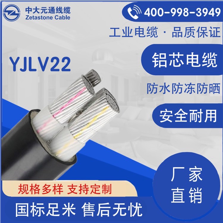 | YJLV22 0.6/1kV | 鋁芯交聯聚乙烯絕緣鋼帶鎧裝聚氯乙烯護套電力電纜 | 該產品適用于配電網或工業裝置中 |